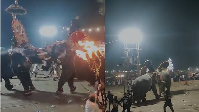 ആനകള് പരസ്പരം പോരടിച്ച ശേഷം ഓടി. ഇത് കണ്ട് പരിഭ്രാന്തരായി കണ്ടുനിന്നവര് ചിതറിയോടി. ഭയന്നോടിയ നിരവധി പേര്ക്ക് വീണു പരിക്കേല്ക്കുകയും ചെയ്തു. സ്ഥലത്ത് ഉണ്ടായിരുന്ന പാപ്പാന്മാര് ആനകളെ വരുതിയിലാക്കാന് ശ്രമിച്ചെങ്കിലും നടന്നില്ല. തുടര്ന്ന് എലിഫന്റ് സ്ക്വാഡ് എത്തിയാണ് ആനകളെ തളച്ചത്.
