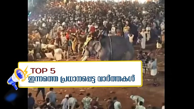 തിരൂർ ബി പി അങ്ങാടി നേർച്ചയ്ക്കിടെ ആന ഇടഞ്ഞു. പാക്കത്ത് ശ്രീക്കുട്ടൻ എന്ന ആനയാണ് ഇടഞ്ഞത്. ഇടഞ്ഞ ആന ഒരാളെ തൂക്കിയെറിഞ്ഞു. ഗുരുതരമായി പരിക്കേറ്റയാളെ കോട്ടയ്ക്കൽ മിംസ് ആശുപത്രിയിൽ പ്രവേശിപ്പിച്ചു. ഇതടക്കം അഞ്ചുവാർത്തകൾ ചുവടെ: