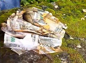തോട്ടിലെ വെള്ളത്തില് ഉപേക്ഷിച്ച നിലയില് കണ്ടെത്തിയത്. മഞ്ചേരി പൊലീസ് സ്ഥലത്തെത്തി പരിശോധന നടത്തി. ചില നോട്ടുകള് കത്തിച്ച നിലയിലാണ്.