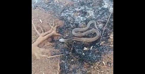 തൃശൂർ: ക്ഷേത്രത്തിന് സമീപത്തെ പറമ്പിൽ തീപിടിച്ചപ്പോൾ അതിൽ അകപ്പെട്ടുപോയ മൂർഖൻ പാമ്പിന് പുതു ജീവൻ. അഗ്നിശമന സേനാ ഉദ്യോഗസ്ഥനാണ് പാമ്പിനെ രക്ഷിച്ചത്.