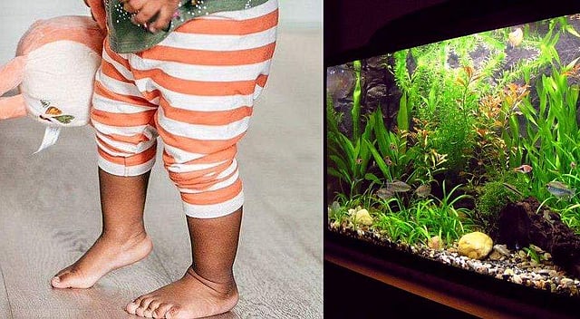 കുട്ടി അക്വേറിയത്തിൽ വലിച്ചതോടെ ഇത് മേലേക്കു വീഴുകയായിരുന്നു
