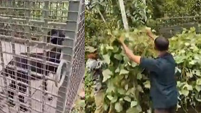 തൃശൂർ: ചാലക്കുടി ചിറങ്ങരയിൽ ജനവാസമേഖലയിൽ ഇറങ്ങിയ പുലിയെ പിടിക്കാനുള്ള കൂടൊരുക്കി വനം വകുപ്പ്. പുലിയെ കണ്ട മേഖലയിലാണ് കെണി വച്ചിരിക്കുന്നത്. പച്ചില കൊണ്ടു മൂടി പ്രകൃതിയുമായി ഇണങ്ങുന്ന വിധത്തിൽ കൂടൊളിപ്പിച്ചാണ് പുലിയെ കുടുക്കുന്നത്. അതീവ വൈദഗ്ധ്യത്തോടെ വനം ജീവനക്കാർ ഒരുക്കിയ കെണിക്കൂട്ടിൽ പുലിയെ ആകർഷിക്കാൻ കറുത്ത ആട്ടിൻ കുട്ടിയെയും കെട്ടിയിട്ടുണ്ട്. വാഴച്ചാൽ ഡിഎഫ്ഒ ആർ ലക്ഷ്മിയുടെ നേതൃത്വത്തിലുള്ള സംഘമാണ് പുലിക്കായി കെണി ഒരുക്കിയിരിക്കുന്നത്.