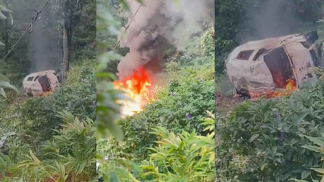 ഇവരെ നാട്ടുകാര് രക്ഷപെടുത്തിയ ശേഷമാണ് വാഹനത്തില് തീ പടര്ന്നത്. പരിക്കേറ്റവരെ തേനി മെഡിക്കല് കോളജില് പ്രവേശിപ്പിച്ചു.