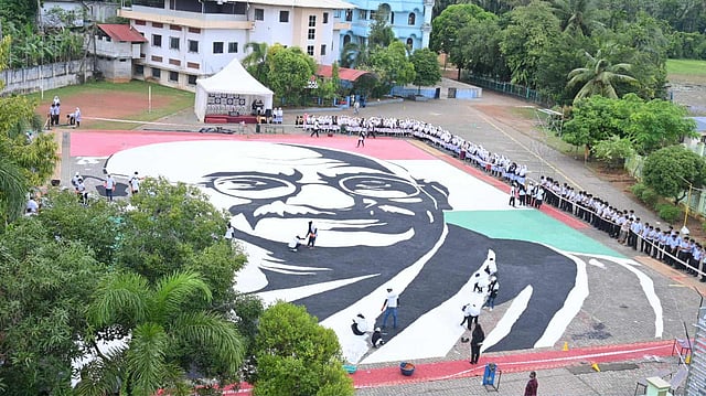 ആറ് മണിക്കൂറിനുള്ളിലാണ് ഛായാചിത്രം പൂര്ത്തിയാക്കിയത്. കലാ അധ്യാപകനായ വി പി പ്രജിത്താണ് ഈ സംരംഭത്തിന് നേതൃത്വം നല്കിയത്. വിദ്യാര്ഥികള്ക്കിടയില് ദേശീയ അവബോധം വളര്ത്തുന്നതിനായാണ് ഈ ഛായാചിത്രം സൃഷ്ടിച്ചതെന്ന് പ്രജിത്ത് പറഞ്ഞു.