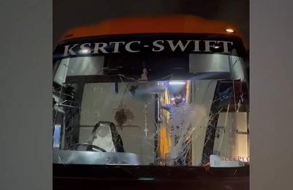ബംഗളൂരുവിലാണ് സംഭവം. തിരുവനന്തപുരത്തേയ്ക്ക് യാത്ര പുറപ്പെട്ട ബസിന് നേരെയാണ് ഗുണ്ടാ ആക്രമണം ഉണ്ടായത്. ബൈക്കിന് സൈഡ് കൊടുത്തില്ലെന്ന് ആരോപിച്ചായിരുന്നു ആക്രമണമെന്നാണ് റിപ്പോര്ട്ടുകള്.