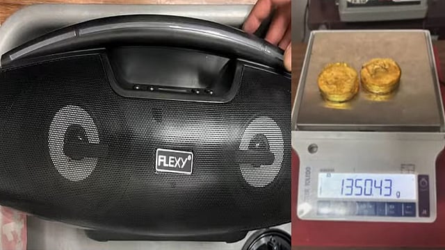 സിലിണ്ടര് ആകൃതിയിലുള്ള സ്വര്ണം ബ്ലൂ ടൂത്ത് സ്പീക്കറിനുള്ളില് ഒളിപ്പിച്ചാണ് കടത്താന് ശ്രമിച്ചത്. പിടിച്ചെടുത്ത സ്വര്ണത്തിന് വിപണിയില് ഏകദേശം ഒരു കോടി രൂപ വിലവരുമെന്ന് അധികൃതര് സൂചിപ്പിച്ചു.
