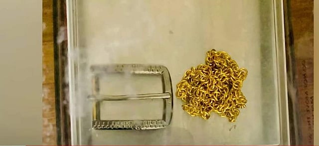 ബെല്റ്റിന്റെ യഥാര്ത്ഥ ബക്കിള് നീക്കം ചെയ്തശേഷം സ്വര്ണ ബക്കിള് ഉറപ്പിക്കുകയായിരുന്നു. സംശയം തോന്നാതിരിക്കാനായി ഇതുനു മുകളില് കറുത്ത നിറവും പൂശിയിരുന്നു. കസ്റ്റംസ് ഉദ്യോഗസ്ഥര് നടത്തിയ പരിശോധനയിലാണ് സ്വര്ണ ബക്കിള് കണ്ടെത്തിയത്.