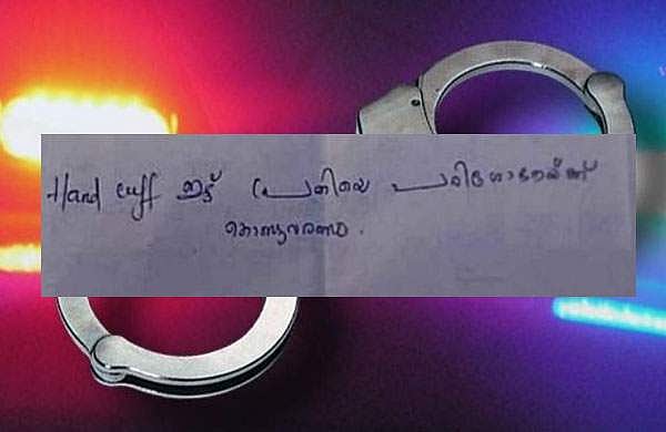 തിരുവനന്തപുരം: വൈദ്യപരിശോധനയ്ക്കായി എത്തിച്ച പ്രതിയെ വിലങ്ങ് അണിയിച്ച് എത്തിക്കാന് ഡോക്ടറുടെ നിര്ദേശം. കൈ വിലങ്ങ് അണിയിച്ച് പ്രതിയെ പരിശോധനയ്ക്ക് ഹാജരാക്കാനാണ് ഡോക്ടര് പൊലീസിന് കുറിപ്പ് നല്കിയത്.