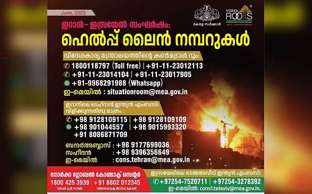 തിരുവനന്തപുരം: ഇറാനിലെയും ഇസ്രയേലിലെയും കേരളീയര് നിലവില് സുരക്ഷിതരാണെന്ന് നോര്ക്ക റൂട്ട്സ്(norka) സിഇഒ അജിത് കോളശേരി. ഇസ്രയേലിലെ ടെല്അവീവിലും ഇറാനിലെ ടെഹ്റാനിലും സാഹചര്യം ഗുരുതരമായി തുടരുകയാണെന്നും മിസൈലാക്രമണങ്ങളില് നിന്നു രക്ഷപ്പെട്ടതിന്റെ വിവരം ഇരുരാജ്യങ്ങളിലെയും മലയാളികള് പങ്കുവെച്ചതായും അദ്ദേഹം പറഞ്ഞു.