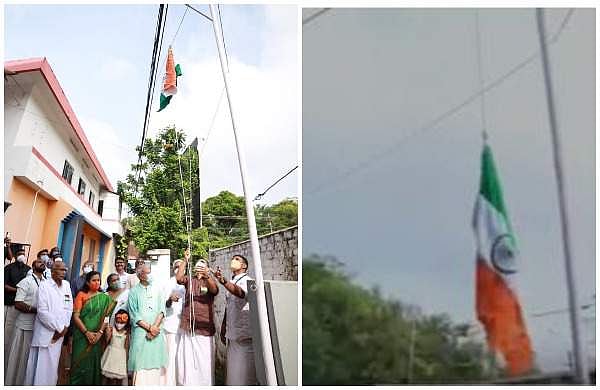 അതേസമയം, എകെജി സെന്ററില് സിപിഎം പാര്ട്ടി കൊടിയ്ക്കൊപ്പം ദേശീയ പതാക ഉയര്ത്തിയത് വിവാദമായി. മറ്റു കൊടികള്ക്കൊപ്പം ദേശീയ പതാക ഉയര്ത്തുന്നത് ദേശീയ പതാക കോഡിന്റെ ലംഘനമാണ് എന്ന് ചൂണ്ടിക്കാട്ടി കോണ്ഗ്രസ് രംഗത്തെത്തി.