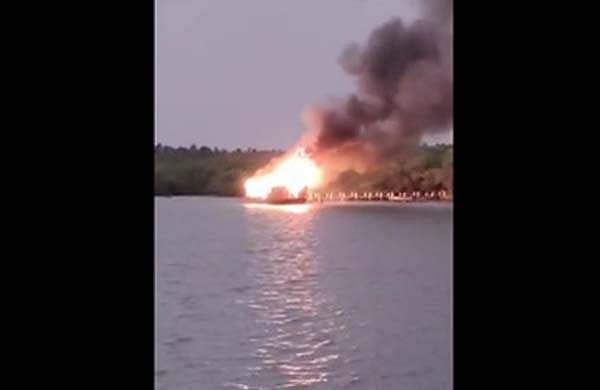 കാട്ടാമ്പള്ളി കൈരളി ഹെറിറ്റേജിന്റെ ഉടമസ്ഥതയിലുള്ള ഉല്ലാസ ബോട്ടാണ് പൂര്ണമായി കത്തി നശിച്ചത്. പുഴയോരത്ത് നിര്ത്തിയിട്ടിരുന്നതായിരുന്നു. അഗ്നിശമന സേന സ്ഥലത്തെത്തുമ്പോഴേക്കും ബോട്ട് പൂര്ണ്ണമായും കത്തിനശിച്ചിരുന്നുവെന്നാണ് വിവരം. ആര്ക്കും പരിക്കില്ല. ബോട്ടില് വെല്ഡിങ് ജോലിയുള്പ്പെടെ നടന്നിരുന്നതായാണ് വിവരം.