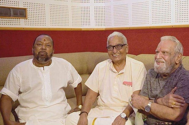 സംവിധായകന് മോഹന്, ഭാര്യയും അഭിനേത്രിയുമായ അനുപമ, സീരിയല് സംവിധായകന് അനില് വാസുദേവ്, സി വേണുഗോപാല്, ഷിബു ടുലിപ്സ് തുടങ്ങിയവര് ഉള്പ്പെട്ട സൗഹൃദ സദസ്സാണു ജയചന്ദ്രന് ഒച്ചയും ബഹളവുമില്ലാത്തൊരു സ്വീകരണമൊരുക്കിയത്. വിവരമറിഞ്ഞ കലാമണ്ഡലം ഗോപി വഞ്ചിക്കുളത്തെ റെക്കോര്ഡിങ് സ്റ്റുഡിയോയിലെത്തുകയായിരുന്നു. ജയചന്ദ്രനും വിദ്യാധരനുമൊത്ത് ഗോപിയാശാന് ഏറെനേരം ഓര്മകള് പങ്കുവച്ചു.