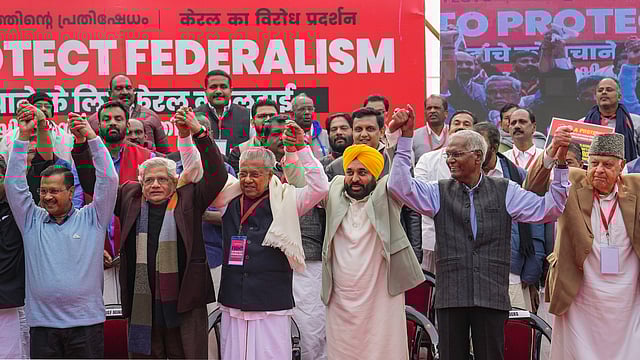 ഫെഡറലിസം സംരക്ഷിക്കണമെന്ന മുദ്രാവാക്യവുമായിട്ടാണ് ഇടതുമുന്നണിയുടെ ആഭിമുഖ്യത്തിൽ സംസ്ഥാന സർക്കാർ ഡൽഹി ജന്തർ മന്തറിൽ സമരം നടത്തിയത്. മുഖ്യമന്ത്രി പിണറായി വിജയന്റെ നേതൃത്വത്തില് മന്ത്രിമാരും ജനപ്രതിനിധികളും കേരള ഹൗസില് നിന്നും പ്രകടനമായിട്ടാണ് സമരവേദിയായ ജന്തര് മന്തറിലെത്തിയത്. ഡിഎംകെ പ്രതിനിധിയായി തമിഴ്നാട് മന്ത്രി പഴനിവേല് ത്യാഗരാജനും സമരത്തിൽ പങ്കെടുത്തു.
