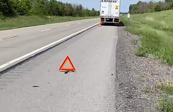 യന്ത്ര തകരാര് മൂലം വാഹനം വഴിയില് കിടന്നാല് പിന്നില് നിന്ന് വരുന്ന വാഹനങ്ങള്ക്ക് മുന്നറിയിപ്പ് ലഭിക്കാന് 50 മീറ്റര് അകലെയെങ്കിലും വാര്ണിംഗ് ട്രയാംഗിള് സ്ഥാപിച്ചിരിക്കണം. വളവില് വച്ചാണ് വാഹനത്തിന് തകരാര് സംഭവിച്ചതെങ്കില് വളവ് തുടങ്ങുന്നതിന് 50 മീറ്റര് മുന്പിലായി വാര്ണിംഗ് ട്രയാംഗിള് സ്ഥാപിക്കേണ്ടതാണ്. ഇത്തരം സന്ദര്ഭങ്ങളില് ഹസാര്ഡ്സ് വാര്ണിങ് ലാമ്പുകളും ഓണാക്കേണ്ടതാണെന്നും വീഡിയോയില് പറയുന്നു.
