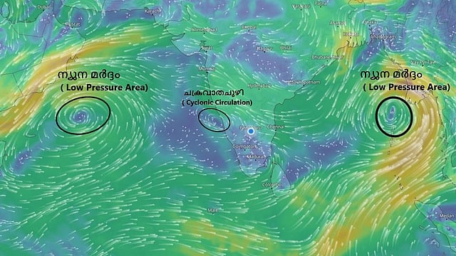 മധ്യ കിഴക്കന് അറബിക്കടലില് കര്ണാടക തീരത്തിന് മുകളിലായി ചക്രവാതച്ചുഴി നിലനില്ക്കുന്നുണ്ട്. ഇതിന്റെയെല്ലാം സ്വാധീനഫലമായി കേരളത്തില് അടുത്ത ഒരാഴ്ച ഇടിമിന്നലോടു കൂടിയ മഴയാണ് പ്രവചിക്കുന്നത്.