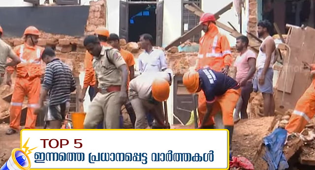 കനത്തമഴയില് കൊടകരയില് ഇരുനില കെട്ടിടം ഇടിഞ്ഞു വീണ് മൂന്നു ഇതര സംസ്ഥാന തൊഴിലാളികള് മരിച്ചു. ബംഗാള് സ്വദേശികളായ രൂപേലും രാഹുലുമാണ് മരിച്ചത്. ഇതടക്കം അഞ്ചുവാർത്തകൾ ചുവടെ: