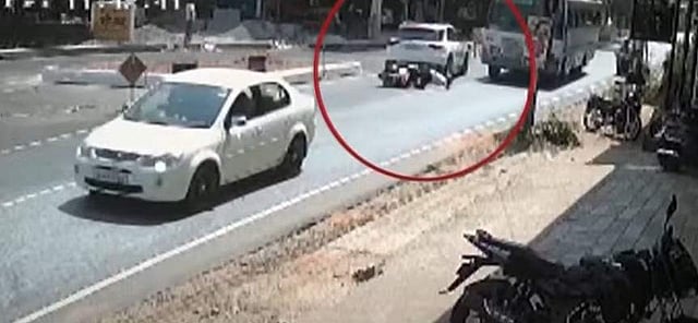 ഇതു കണ്ട് അപകടത്തില്പ്പെട്ട ബൈക്ക് യാത്രക്കാരന്റെ മുന്നില് സഞ്ചരിച്ചിരുന്ന കാര് പെട്ടെന്ന് ബ്രേക്കിട്ടു. കാറില് ഇടിക്കാതിരിക്കാന് പെട്ടെന്ന് ബ്രേക്ക് ചെയ്ത ഹനീഫ നിയന്ത്രണം നഷ്ടപ്പെട്ട് റോഡിലേക്ക് വീണു. ഈ സമയം ബസ് ഹനീഫയുടെ ദേഹത്തേക്ക് കയറുകയായിരുന്നു. ഹനീഫ തല്ക്ഷണം മരിച്ചു.