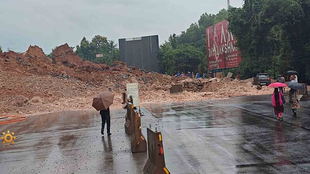 കാസര്കോട്: നിര്മാണം പുരോഗമിക്കുന്ന ദേശീയപാത 66 ന് സമീപം വീണ്ടും മണ്ണിടിച്ചില്. കാസര്കോട് ചെറുവത്തൂര് മയിച്ച വീരമലക്കുന്നിലാണ് മണ്ണിടിച്ചില്. ജില്ലയില് ശക്തമായ മഴ തുടരുന്നതിനിടെയാണ് മണ്ണിടിച്ചില്. ഈ മേഖലയില് ഗതാഗതം വഴിതിരിച്ചുവിട്ടു. ബുധനാഴ്ച രാവിലെയാണ് വീരമലക്കുന്നില് നിന്ന് വന്തോതില് മണ്ണ് ഇടിഞ്ഞ് ദേശീയപാതയിലേക്ക് പതിച്ചത്. വാഹനങ്ങള് കടന്നുപോകുന്നതിനിടെ ആയിരുന്നു മണ്ണിടിച്ചില്. കുന്നിടിയുന്ന സമയത്ത് ഇതുവഴി പോവുകയായിരുന്ന ഒരു കാറിലെ യാത്രക്കാര് അത്ഭുതകരമായി രക്ഷപ്പെടുകയായിരുന്നവെന്ന് നാട്ടുകാര് പറയുന്നു.