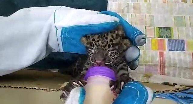ആദ്യം പാലുകുടിക്കാന്‍ മടികാണിച്ച പുലിക്കുഞ്ഞ്, ഇപ്പോള്‍ പരിചാരകരോട് ഇണങ്ങിയ മട്ടാണ്