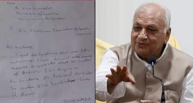 ഗവര്‍ണര്‍ക്ക് കേരള സര്‍വകലാശാല വിസി നല്‍കിയ കത്ത്, ഗവര്‍ണര്‍ ആരിഫ് മുഹമ്മദ് ഖാന്‍