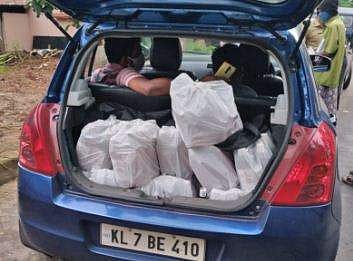 മാഹിയില്‍ നിന്നുള്ള മദ്യം കടത്തുന്നതിനിടെ പിടിയിലായ കാര്‍