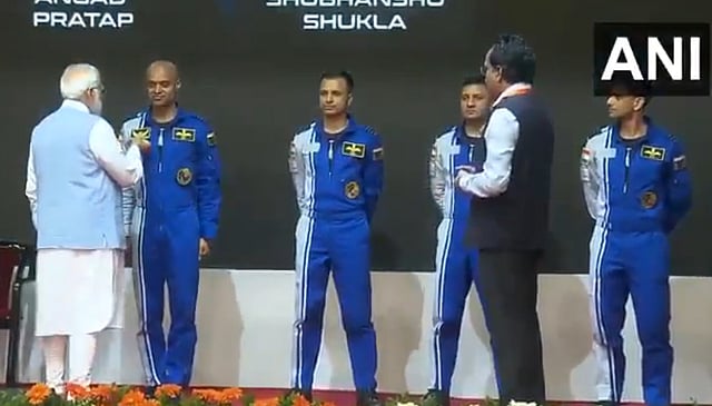 സഞ്ചാരികളെ അവതരിപ്പിക്കാനായത് അഭിമാനകരമയ നിമിഷമെന്ന് പ്രധാനമന്ത്രി പറഞ്ഞു. പുതിയ കാലചക്രത്തിന്റെ തുടക്കമാണിത്. ഗഗന് യാത്രാസംഘത്തെ കണ്ടതും സംസാരിക്കാനായും ഭാഗ്യം. ഇവര് പ്രതിനിധാനം ചെയ്യുന്നത് രാജ്യത്തിന്റെ സാഹസികതയും ധൈര്യവുമാണ്. രാജ്യത്തിന്റെ മുഴുവന് ആശംസകളും നിങ്ങള്ക്കൊപ്പമെന്ന് നരേന്ദ്ര മോദി പറഞ്ഞു.