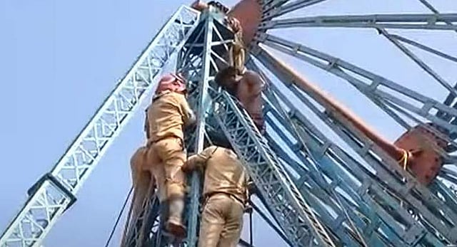 കോഴിക്കോട്: വടകര ഓര്ക്കാട്ടേരിയില് യന്ത്ര ഊഞ്ഞാല് അഴിച്ചുമാറ്റുന്നതിനിടെ കുടുങ്ങിയ തൊഴിലാളിയെ രക്ഷിച്ചു. മലപ്പുറം സ്വദേശി ഷംസുവാണ് ഒരു മണിക്കൂര് നേരം കുടുങ്ങി കിടന്നത്. തുടര്ന്ന് ഫയര്ഫോഴ്സും നാട്ടുകാരും ചേര്ന്നാണ് രക്ഷിച്ചത്.