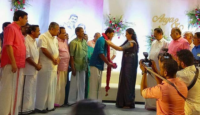 തിരുവനന്തപുരം: ബാലുശ്ശേരി എംഎൽഎ സച്ചിൻ ദേവും തിരുവനന്തപുരം മേയർ ആര്യ രാജേന്ദ്രനും വിവാഹിതരായി. രാവിലെ 11 മണിക്ക് തിരുവനന്തപുരം എകെജി ഹാളില് വെച്ചായിരുന്നു വിവാഹം. ഇരുവരും പരസ്പരം ഹാരം അണിഞ്ഞു. മുഖ്യമന്ത്രി പിണറായി വിജയനും മന്ത്രിമാരും വിവാഹ ചടങ്ങില് പങ്കെടുത്തു. മുഖ്യമന്ത്രി കുടുംബ സമേതമാണ് വിവാഹത്തിനെത്തിയത്.