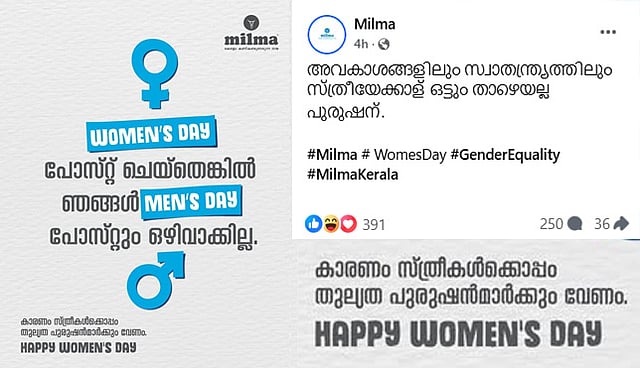 ലിംഗ സമത്വം എന്ന ഹാഷ് ടാഗിന് ഒപ്പം സ്ത്രീകള്ക്കൊപ്പം പുരുഷന്മാര്ക്കും തുല്യത വേണം എന്ന ക്യാപ്ഷന് ഉള്പ്പെടെയാണ് പോസ്റ്റര്. വനിതാ ദിനാശംസകള് പങ്കുവച്ച ഞങ്ങള് പുരുഷദിനം മറക്കില്ലെന്നും പോസ്റ്ററില് വ്യക്തമാക്കുന്നു. വാലും തലയുമില്ലാത്ത തരത്തില് വനിതാദിനാശംസകള് പങ്കുവച്ച മില്മയ്ക്കെതിരെ വ്യാപക വിമര്ശനമാണ് കമന്റ് ബോക്സില് ഉള്പ്പെടെ ഉയരുന്നത്. വിവാദം ഉണ്ടാക്കി ശ്രദ്ധ നേടാനാണ് മില്മ ശ്രമിക്കുന്നത് എന്നും ആളുകള് കുറ്റപ്പെടുത്തുന്നു. 'അയ്യേ...' എന്നാണ് മിക്കവരും പോസ്റ്റിന് കീഴില് നല്കിയിരിക്കുന്ന കമന്റ്