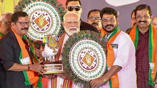 പാലക്കാട് 22 വർഷം ഭരിച്ചത് ഇടത് എംഎൽഎമാരായിരുന്നു. 5 പതിറ്റാണ്ട് കോൺഗ്രസ് എംഎൽഎമാരും പ്രതിനിധീകരിച്ചു. എന്നിട്ടും ഈ മണ്ഡലത്തിൽ വികസനം വന്നില്ല. കേന്ദ്രത്തിൽ ബിജെപി വന്ന ശേഷമാണ് പാലക്കാട്ടിനു വികസനമുണ്ടായി തുടങ്ങിയതെന്നും പ്രധാനമന്ത്രി പറഞ്ഞു. ഹെലിക്കോപ്റ്റർ മാർഗം പാലക്കാട് മേഴ്സി കോളേജ് ഗ്രൗണ്ടിലിറങ്ങിയ പ്രധാനമന്ത്രി നരേന്ദ്രമോദിയെ വൻ ജനക്കൂട്ടമാണ് സ്വീകരിച്ചത്. അവിടെ നിന്ന് വാഹനവ്യൂഹത്തിൽ മോദി കോട്ടമൈതാനത്തേക്ക് പുറപ്പെട്ടു. മിഷൻ സ്കൂൾ ജങ്ഷൻ മുതൽ എസ്ബിഐ ജങ്ഷൻ വരെ റോഡിന് ഇരുവശവും തിങ്ങിനിറഞ്ഞ പ്രവർത്തകരെ അദ്ദേഹം റോഡ് ഷോയിലൂടെ അഭിവാദ്യം ചെയ്തു. പാലക്കാട്ടെ പൊതു സമ്മേളനത്തിൽ പാലക്കാട് ജില്ലയിലെ എൻഡിഎ സ്ഥാനാർത്ഥികൾ പങ്കെടുത്തു.