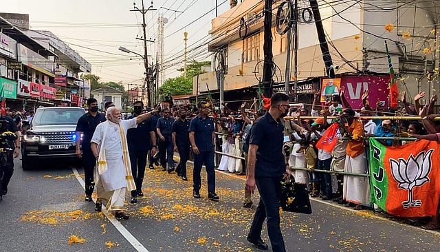 കൊച്ചി: കൊച്ചിയെ ആവേശത്തിലാക്കി പ്രധാനമന്ത്രിയുടെ റോഡ് ഷോ. തേവര ജംഗ്ഷൻ മുതൽ തേവര സേക്രഡ് ഹാർട്ട് കോളജ് മൈതാനം വരെ 1.8 കിലോമീറ്റർ ദൂരത്തിൽ ആദ്യം കാൽനടയായും പിന്നീട് കാറിലുമാണ് അദ്ദേഹം സഞ്ചരിച്ചത്. ഇരു വശത്തും ആയിരക്കണക്കിന് ബിജെപി പ്രവർത്തർ തടിച്ചുകൂടി. പൂക്കൾ വിതറിയാണ് പ്രവർത്തകർ മോദിയെ വരവേറ്റത്.