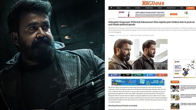 അത്തരം സിനിമയില് അഭിനയിക്കാനുള്ള മോഹന്ലാലിന്റെ തീരുമാനം വിശ്വസ്തരായ ആരാധകവൃന്ദത്തോടുള്ള വഞ്ചനയാണ്. എമ്പുരാന് ഹിന്ദു വിരുദ്ധ- ഇന്ത്യ വിരുദ്ധ സിനിമയായി ദേശീയ തലത്തില് തുറന്നുകാട്ടപ്പെടണമെന്നതില് സംശയമില്ലെന്നും ലേഖനം പറയുന്നു. പൃഥ്വിരാജിന്റെ മുന് രാഷ്ട്രീയ നിലപാടുകളേയും ഇതില് വിമര്ശിക്കുന്നുണ്ട്. 1921-ലെ മലബാര് കലാപത്തിന്റെ പശ്ചാലത്തില് വാരിയംകുന്ന എന്ന പേരില് സിനിമ പ്രഖ്യാപിച്ച ശേഷം അത് നടക്കാതെ പോയതിനെക്കുറിച്ച് ലേഖനത്തില് ഒര്മിപ്പിക്കുന്നു. സിനിമാ തെരഞ്ഞെടുപ്പുകള്ക്ക് പുറമേ, പൃഥ്വിരാജ് ദേശവിരുദ്ധ നിലപാടുകള് സ്വീകരിച്ചതായും ആരോപണമുണ്ടെന്ന് ലേഖനം പറയുന്നു. ലക്ഷദ്വീപ്, പൗരത്വ ഭേദഗതി ബില് എന്നീ വിഷയങ്ങളിലെ നിലപാടുകള് ചൂണ്ടിക്കാട്ടിയാണ് വിമര്ശനം.