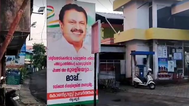 തൃശൂര്: തൃശൂര് ലോക്സഭ മണ്ഡലത്തില് കോണ്ഗ്രസ് നേതാവ് കെ മുരളീധരന്റെ തോല്വിക്ക് പിന്നാലെ ഡിസിസി പ്രസിഡന്റ് ജോസ് വള്ളൂര് രാജിവച്ചതിനെ തുടര്ന്ന് താത്കാലിക ചുമതല പാലക്കാട് എംപി വി കെ ശ്രീകണ്ഠന് ഏറ്റെടുക്കാനിരിക്കേ, തൃശൂര് ഡിസിസിക്ക് മുന്നില് ഫ്ളക്സ് പ്രത്യക്ഷപ്പെട്ടു. 'വര്ഗീയതക്കെതിരായ പോരാട്ടത്തില് ചതിയുടെ പത്മവ്യൂഹത്തില് പെട്ട് പോരാട്ടഭൂമിയില് പിടഞ് വീണ മുരളിയേട്ടാ മാപ്പ്... നയിക്കാന് നിങ്ങളില്ലെങ്കില് നമ്മളുമില്ല..' - തൃശൂരിലെ കോണ്ഗ്രസ് പ്രവര്ത്തകരുടെ പേരിലാണ് ഫ്ളക്സ് പ്രത്യക്ഷപ്പെട്ടത്.