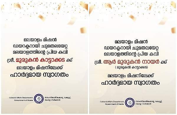 'മലയാളം മിഷന് ഡയറക്ടറായി ചുമതലയേറ്റ മലയാളത്തിന്റെ പ്രിയ കവി ശ്രീ മുരുകന് കാട്ടാക്കടക്ക് മലയാളം മിഷനിലേക്ക് ഹാര്ദ്ദമായ സ്വാഗതം' എന്നാണ് മലയാളം മിഷന്റെ പുതിയ പോസ്റ്റ്.
