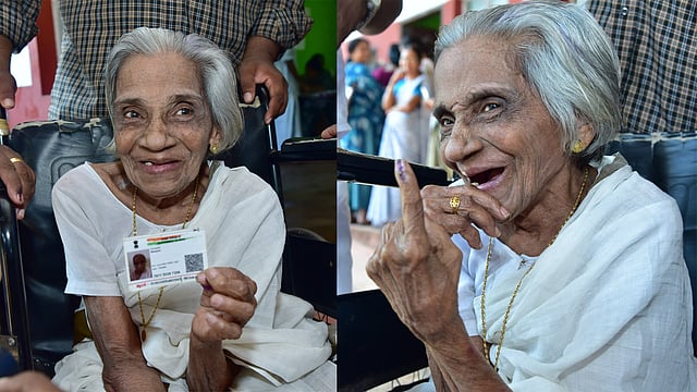 ബന്ധുക്കളുടെ സഹായത്തോടെ പോളിങ് കേന്ദ്രത്തിലെത്തിയ അവര്, തന്റെ വോട്ടവകാശം വിനിയോഗിക്കേണ്ടത് കടമയാണെന്ന ഉറച്ചു പറഞ്ഞു. 'ഒരു വയ്യായ്കയിലും ഞാന് വോട്ട് ചെയ്യാതിരുന്നിട്ടില്ല,' കുസൃതി ചിരിക്കിടയില് അവര് പറഞ്ഞു.