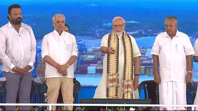 തിരുവനന്തപുരം: കേരളത്തിന്റെ വികസന കുതിപ്പിന് കൂടുതല് കരുത്തുപകര്ന്ന് അഭിമാന പദ്ധതിയായ വിഴിഞ്ഞം രാജ്യാന്തര തുറമുഖം പ്രധാനമന്ത്രി നരേന്ദ്ര മോദി നാടിന് സമര്പ്പിച്ചു. വിഴിഞ്ഞം അന്താരാഷ്ട്ര തുറമുഖത്തിന്റെ ഒന്നാംഘട്ടത്തിന്റെ കമീഷനിങ് ആണ് നടന്നത്. രാവിലെ 10.15ഓടേ വിഴിഞ്ഞം തുറമുഖത്ത് എത്തിയ പ്രധാനമന്ത്രി പോര്ട്ട് ഓപ്പറേഷന് സെന്റര് സന്ദര്ശിച്ച് പ്രവര്ത്തനങ്ങള് വിലയിരുത്തിയശേഷം ബെര്ത്തും കണ്ട ശേഷമാണ് ഉദ്ഘാടനം നിര്വഹിച്ചത്.