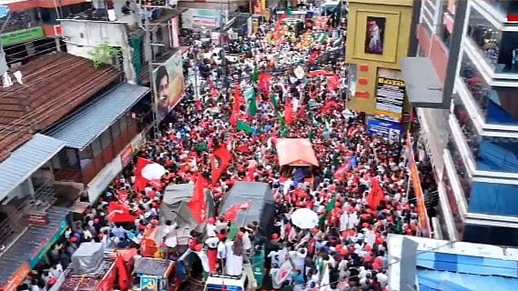 മലപ്പുറം: ആവേശക്കടലായി നിലമ്പൂര്. പരസ്യപ്രചാരണം അവസാനലാപ്പിലേക്ക് (Nilambur Election )കടന്നപ്പോള് പ്രവര്ത്തകരുടെ ആവേശം ഉച്ചസ്ഥായിലെത്തി. സ്ഥാനാര്ഥികളും നേതാക്കളും ഉള്പ്പടെ ആയിരക്കണക്കിന് പ്രവര്ത്തകരാണ് നിലമ്പൂര് ടൗണിലേക്ക് എത്തിക്കൊണ്ടിരിക്കുന്നത്. ആറ് മണിവരെയാണ് പരസ്യപ്രചാരണത്തിന് അനുമതിയുള്ളത്. സ്വതന്ത്രനായി മത്സരിക്കുന്ന പിവി അന്വര് കലാശക്കൊട്ട് ഉപേക്ഷിച്ചു