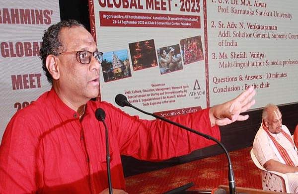 കേരള ബ്രാഹ്മണസഭയുടെ ബ്രാഹ്മിന്സ് ഗ്ലോബല് മീറ്റിന്റെ രണ്ടാംദിനത്തില് ‘ലോകസംസ്കാരം വേദപാരമ്പര്യത്തിലൂടെ’ എന്ന വിഷയത്തില് സംഘടിപ്പിച്ച സെമിനാറില് സംസാരിക്കുകയായിരുന്നു അഡ്വ. എന് വെങ്കിട്ടരാമന്. സനാതനധര്മം പുതിയ തലമുറയിലേക്ക് പകര്ന്നുനല്കാന് നമുക്ക് കഴിയുന്നില്ലെന്നത് ഖേദകരമാണ്. ജീവിതമെന്നത് ധര്മം, അര്ഥം, കാമം എന്നിവയിലധിഷ്ഠിതമാണ്.