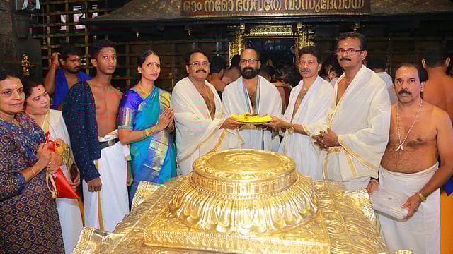 ഗുരുവായൂരപ്പന്റെ സോപാനത്ത് സ്വര്ണക്കിണ്ണം സമര്പ്പിക്കുകയായിരുന്നു. ഏകദേശം 38.93 പവന് തൂക്കം വരും. 25 ലക്ഷം രൂപയോളം വിലമതിക്കും. ക്ഷേത്രം ഡപ്യൂട്ടി അഡ്മിനിസ്ട്രേറ്റര് പ്രമോദ് കളരിക്കല് സ്വര്ണക്കിണ്ണം ഏറ്റുവാങ്ങി.