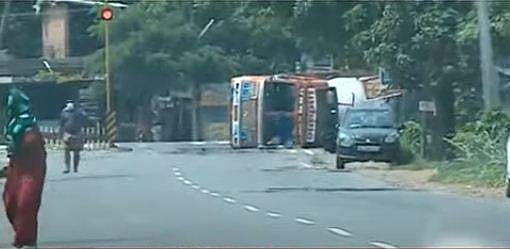 ഉച്ചയ്ക്ക് രണ്ടുമണിയോടെയാണ് സംഭവം. പൊലീസ് സംഭവസ്ഥലത്ത് എത്തിയിട്ടുണ്ട്. ചോര്ച്ച പരിഹരിക്കുന്നതിനുള്ള ശ്രമം അഗ്നിശമന സേന ആരംഭിച്ചു.നിറയെ ലോഡുമായി വന്ന വാഹനമാണ് അപകടത്തില്പ്പെട്ടത്.