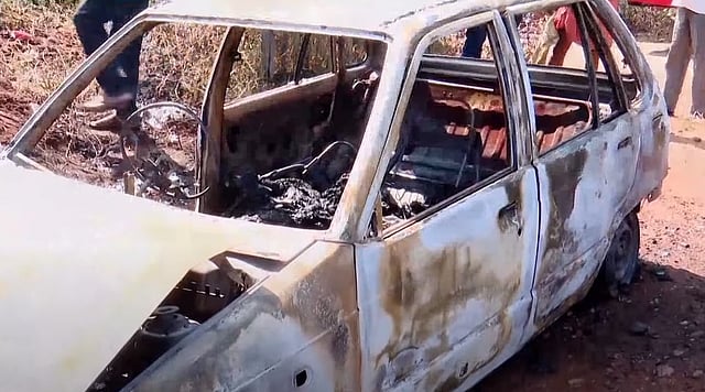 മാരുതി 800 ആണ് കത്തി നശിച്ചത്. ആളൊഴിഞ്ഞ പറമ്പില് ആണ് കാര് കത്തി നശിച്ച് കിടക്കുന്നത്. കാറിനുള്ളില് കത്തിക്കരിഞ്ഞ നിലയിലാണ് മൃതദേഹം ഉള്ളത്.11 മണിക്ക് സിബി എന്നയാള് കാര് ഓടിച്ച് വരുന്നത് കണ്ടിരുന്നതായി നാട്ടുകാര് പറയുന്നു. സിബി ബാങ്കില് നിന്ന് വിരമിച്ചയാളാണ്. ബന്ധുക്കള് കാര് സിബിയുടേത് തന്നെയെന്ന് സ്ഥിരീകരിച്ചു. ഇക്കാര്യത്തില് കൂടുതല് അന്വേഷണത്തിന് ശേഷം മാത്രമേ കൂടുതല് വിവരങ്ങള് ലഭ്യമാകൂ.