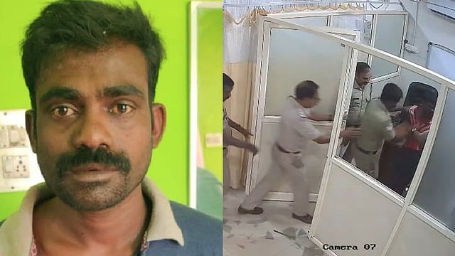വളപട്ടണം പൊലീസ് കസ്റ്റഡി നടപടിയുടെ ഭാഗമായി വൈദ്യ പരിശോധനക്ക് എത്തിച്ചതായിരുന്നു ഇയാളെ. കാഷ്വാലിറ്റി മെഡിക്കല് ഓഫീസറുടെ കാബിനിന്റെ ചില്ലാണ് അടിച്ചു തകര്ത്തത്. തലനാരിഴയ്ക്കാണ് മറ്റ് രോഗികളും ജീവനക്കാരും പരുക്കേല്ക്കാതെ രക്ഷപ്പെട്ടത്.