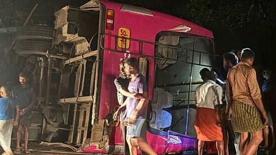 കോട്ടയം: തലയോലപ്പറമ്പിനടുത്ത് വെട്ടിക്കാട്ടുമുക്ക് ഗുരുമന്ദിരം ജംഗഷനിൽ സ്വകാര്യ ബസ് നിയന്ത്രണം വിട്ട് മറിഞ്ഞ് നിരവധി പേർക്ക് പരിക്ക്. മുപ്പതോളം പേർക്ക് പരിക്കേറ്റതായാണ് വിവരം. ഇതിൽ രണ്ടു പേരുടെ നില ഗുരുതരമാണ്. പരിക്കേറ്റവരെ സ്വകാര്യ ആശുപത്രിയിൽ പ്രവേശിപ്പിച്ചു.