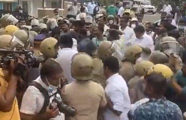 വയനാട്ടിൽ കോൺഗ്രസ് മാർച്ച് അക്രമാസക്തമായി. പൊലീസും പ്രവർത്തകരും തമ്മിൽ ഏറ്റുമുട്ടി. പൊലീസിന്റെ പക്കൽ നിന്ന് ലാത്തിയടക്കം പിടിച്ചു വാങ്ങി പ്രതിഷേധക്കാർ വലിച്ചെറിഞ്ഞു. എസ്പി ഓഫീസിലേക്ക് നടത്തിയ മാർച്ച് വലിയ സംഘർഷത്തിലേക്കാണ് നീങ്ങുന്നത്. ടി സിദ്ദിഖ് എംഎൽഎ അടക്കമുള്ള നേതാക്കൾ പ്രതിഷേധ നിരയിലുണ്ട്.