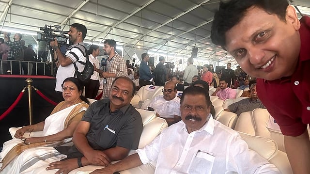 തിരുവനന്തപുരം: വിഴിഞ്ഞം തുറമുഖ പരിപാടിയുടെ ഉദ്ഘാടനത്തിന്റെ സദസ്സില് നിന്നുള്ള ചിത്രം സമൂഹമാധ്യമത്തില് പങ്കുവെച്ച് മന്ത്രി പി എ മുഹമ്മദ് റിയാസ്. സിപിഎം സംസ്ഥാന സെക്രട്ടറി എം വി ഗോവിന്ദന്, ധനമന്ത്രി കെ എന് ബാലഗോപാല്, മുഖ്യമന്ത്രി പിണറായി വിജയന്റെ ഭാര്യ കമല എന്നിവര്ക്കൊപ്പമുള്ള ചിത്രമാണ് മന്ത്രി മുഹമ്മദ് റിയാസ് പങ്കുവെച്ചത്.