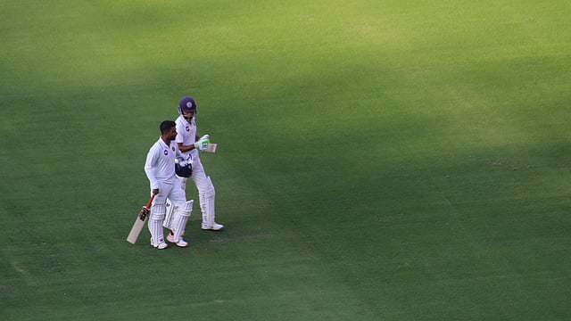 എന്നാല് പിന്നീടെത്തിയ ജലജ് സക്സേന ക്യാപ്റ്റന് സച്ചിന് ബേബിക്ക് മികച്ച പിന്തുണയായി. നാലാം വിക്കറ്റില് ഇരുവരും ചേര്ന്ന് നേടിയ 71 റണ്സ് കേരളത്തിന് കരുത്തായി. 30 റണ്സെടുത്ത ജലജ് സക്സേനയെ അര്സന് നഗ്വാസ്വെല്ല ക്ലീന് ബൗള്ഡാക്കുകയായിരുന്നു. തുടര്ന്നെത്തിയ മുഹമ്മദ് അസറുദ്ദീനും സച്ചിന് ബേബിയും ചേര്ന്ന് അഞ്ചാം വിക്കറ്റ് കൂട്ടുകെട്ടില് ഇത് വരെ 49 റണ്സ് കൂട്ടിച്ചേര്ത്തിട്ടുണ്ട്. ശ്രദ്ധയോടെ ബാറ്റ് വീശിയ ക്യാപ്റ്റന് സച്ചിന് ബേബി 193 പന്തുകളില് നിന്നാണ് 69 റണ്സുമായി പുറത്താകാതെ നില്ക്കുന്നത്. എട്ട് ബൗണ്ടറികള് അടങ്ങുന്നതാണ് സച്ചിന്റെ ഇന്നിങ്സ്.