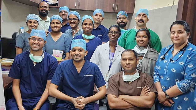 കണ്സള്ട്ടന്റ് കാര്ഡിയോളജിസ്റ്റുമാരായ ഡോ. എ കൃഷ്ണകുമാര്, ഡോ. വിവേക് തോമസ് എന്നിവര് ശസ്ത്രക്രിയ നയിച്ചു. ഡോ. ആദര്ശ്, ഡോ. അശ്വതി, കാത്ലാബ് ടെക്നീഷ്യന്മാരായ ദിവ്യ, ശ്രീലക്ഷ്മി, നഴ്സിങ് ഓഫീസര്മാരായ ജിന്റോ, ശ്രുതി, ഷഹീദ എന്നിവരടങ്ങിയ സംഘത്തിന്റെ കഠിന പ്രയത്നമാണ് വിജയ പൂര്ത്തീകരണത്തിന് പിന്നില്. ഈ സമ്പൂര്ണ പ്രൊസീജ്യര് ഡോ. ആന്റണി പത്താടന് പ്രോക്ട് ചെയ്ത് വിവിധ ഘട്ടങ്ങളില് നിര്ദ്ദേശങ്ങളും പിന്തുണയും നല്കി വിജയത്തിലേക്ക് നയിച്ചു. ആശുപത്രി സൂപ്രണ്ട് ഡോ. താജ് പോള് പണയ്ക്കല് എല്ലാ സംവിധാനങ്ങളും പിന്തുണയും ഉറപ്പാക്കിയതിലൂടെ ഉയര്ന്ന നിലവാരമുള്ള ചികിത്സ വിജയകരമാക്കാന് നിര്ണായകമായ പങ്ക് വഹിച്ചു.