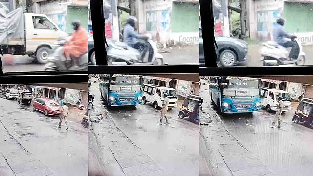 ഗതാഗത തടസം നീക്കുവാന് ശ്രമിക്കുകയായിരുന്ന ഹോം ഗാര്ഡ് രാജേഷ് നിര്ത്താന് കൈ കാണിച്ചു. എന്നാല് ബസ് നിര്ത്താതെ ഹോം ഗാര്ഡിന് സമീപത്തുകൂടി ചീറിപ്പാഞ്ഞ് പോവുകയായിരുന്നു. പെട്ടെന്ന് പിന്നോട്ട് ചാടി മാറിയതിനാലാണ് ഹോം ഗാര്ഡ് തലനാരിഴയ്ക്ക് രക്ഷപ്പെട്ടത്. പഴയങ്ങാടി എസ് ഐ ഇ അനില്കുമാറിന്റെ പരാതിയിലാണ് കേസെടുത്തിട്ടുള്ളത്.