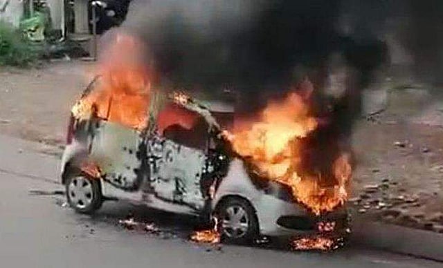 മാവൂർ റോഡിൽ രാവിലെ എട്ട് മണിയോടെയാണ് സംഭവം. കാറിന്റെ എയർ കണ്ടീഷണറിൽ നിന്ന് പുക വരകുന്നത് കണ്ട് ബിമലും മക്കളും പുറത്തിറങ്ങി നിമിഷങ്ങൾക്കകം കാർ പൂർണ്ണമായും തീ പിടിക്കുകയായിരുന്നു. എ സിയിൽ നിന്നുള്ള വെള്ളം ചോർന്ന് ഷോർട്ട് സർക്യൂട്ട് ഉണ്ടായതാണ് തീപിടുത്തത്തിന് കാരണമെന്നാണ് പ്രാഥമിക നിഗമനം. ആർക്കും പരിക്കേറ്റിട്ടില്ല. ഫയർഫോഴ്സ് സ്ഥലത്തെത്തിയാണ് തീ അണച്ചത്