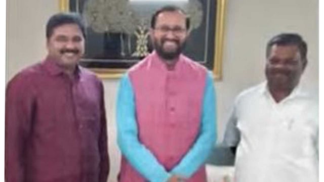 ന്യൂഡല്ഹി: ദേവികുളം മുന് എംഎല്എ എസ് രാജേന്ദ്രന് ബിജെപിയുടെ കേരളത്തിന്റെ പ്രഭാരി പ്രകാശ് ജാവഡേക്കറുമായി കൂടിക്കാഴ്ച നടത്തി. ഡല്ഹിയിലെ വസതിയിലെത്തിയായിരുന്നു കുടിക്കാഴ്ച. കഴിഞ്ഞ ദിവസം ഇടുക്കിയിലെ എല്ഡിഎഫ് സ്ഥാനാര്ഥിയുടെ കണ്വെന്ഷനില് എസ് രാജേന്ദ്രന് ദേവികുളത്ത് പങ്കെടുത്തിരുന്നു. മണ്ഡലംതല പ്രചാരണത്തിന്റെ രക്ഷാധികാരിയായി രാജേന്ദ്രനെ പ്രഖ്യാപിക്കുകയും ചെയ്തിരുന്നു.